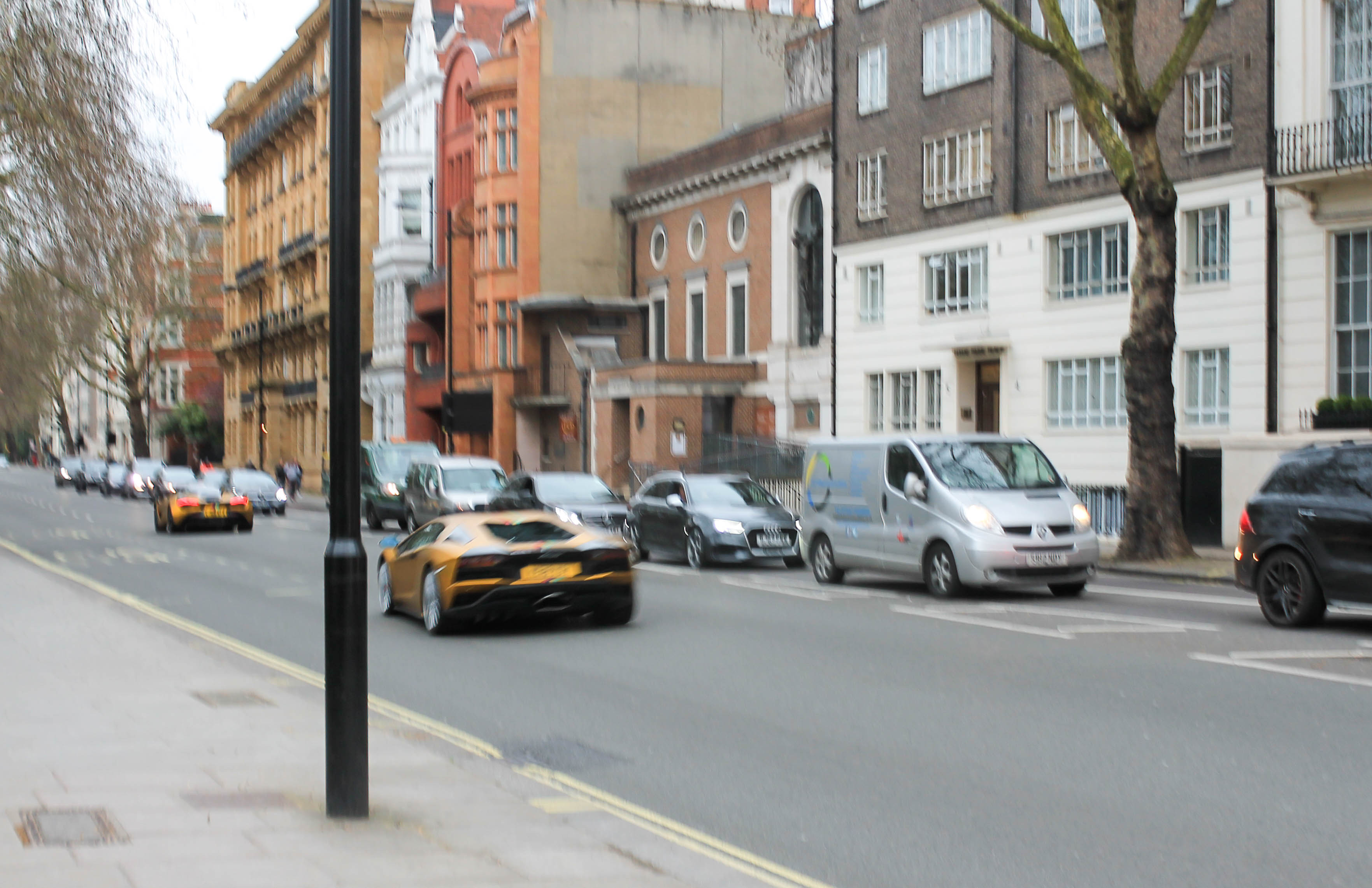 I was standing in the middle of Hyde Park when a cacophony of engine revs echoed off the buildings lining Park Lane. Through the trees, I spied a flash of gold, and started walking towards the exit onto Hyde Park Place. As the gold dot passed the Marble Arch, I realized the thunderous noise and snazzy paint belonged to a McLaren 720S before I caught a glimpse of a gold Lamborghini Aventador following close behind. I broke into a run, hoping to reach the duo before they sped off, only to discover as I burst onto the street, gasping for air, that there were not two, but five gold exotics traveling as a group. Joining the supercars were a pair of Rolls-Royce Ghosts sporting red and green stripes and a chunky Mercedes G63 AMG. My jaw dropped as the light turned green and the quintet roared away. I panicked, since I hadn’t managed to change my camera settings while sprinting through the park, and only managed a few blurry shots. While none of the cars in the pack are exceptionally rare, seeing all five traveling in a color-coordinated group was a moment I’ll never forget.