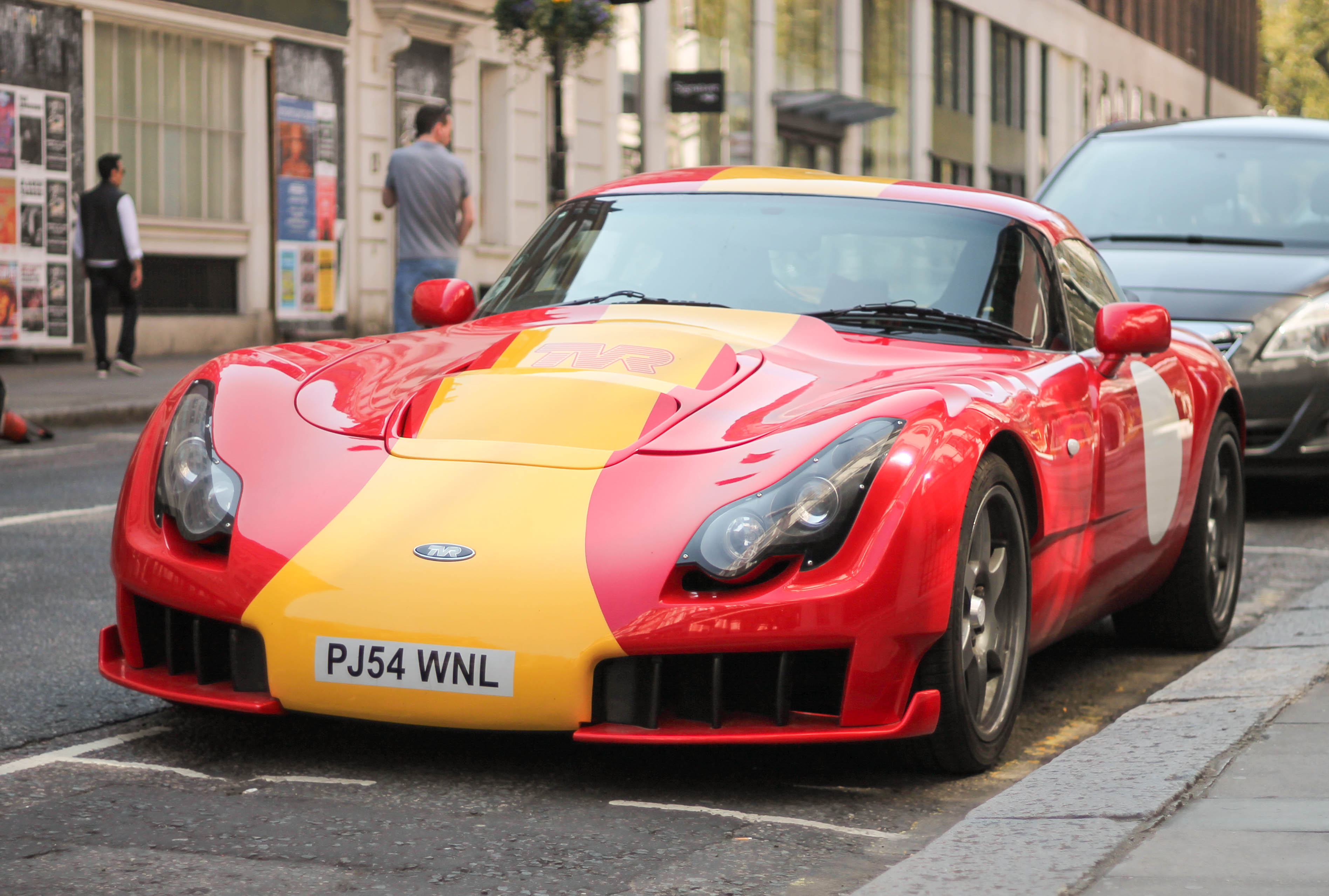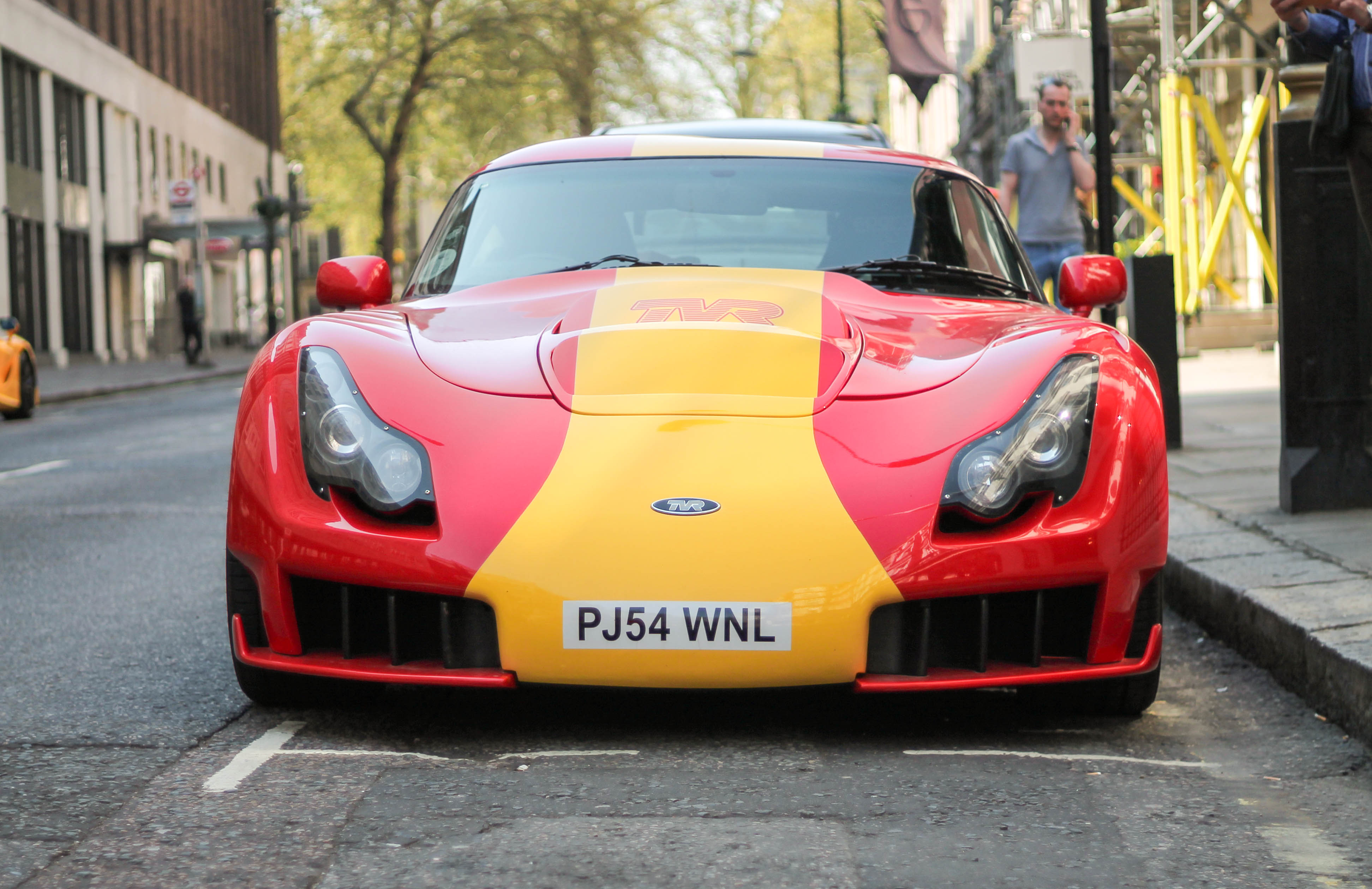 Modern TVRs were never sold in the United States, so I had hoped to find one of these rowdy British sports cars while living in England. Not only did I see one, but it was an extra special TVR: the Sagaris R/T, a one-off prototype of TVR’s wildest model. The Sagaris was an absolute beast: weighing just 2,376 lbs, the TVR-built inline-six sent 406 bhp and 349 lb-ft of torque to the rear wheels, and there was no ABS, front airbags, traction control, or stability control to save an inexperienced driver. The styling was equally untamed, with two massive hood vents, headlights and taillights that seemed to melt off the bodywork, a uniquely clear rear wing, and exhausts bursting perpendicularly out of the rear bumper. The special R/T prototype was equipped with a roll cage and was one of two examples produced with real fender vents. The red and yellow paint job and deranged design helped the Sagaris R/T stand out on a block that also had a McLaren 720S and two McLaren 570Ses parked nearby.